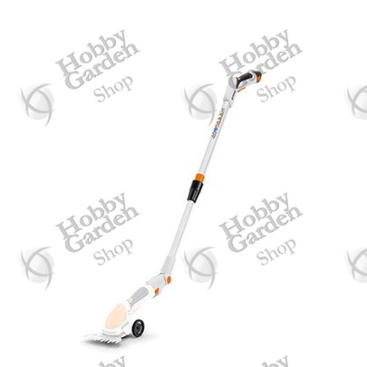 Sostituzione della batteria nell’impugnatura di comando, regolazione continua asta telescopica da 95-110 cm, raggio orientabile di 125°, ruote scorrevoli.