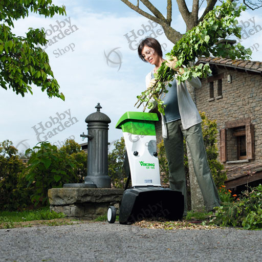 Il biotrituratore elettrico GE 103 è in grado di sminuzzare rami e ramoscelli e di triturare finemente materiale morbido come foglie e altri residui vegetali. È possibile scegliere tra due aperture di caricamento: una per ramaglie e l’altra per il materiale morbido da triturare.