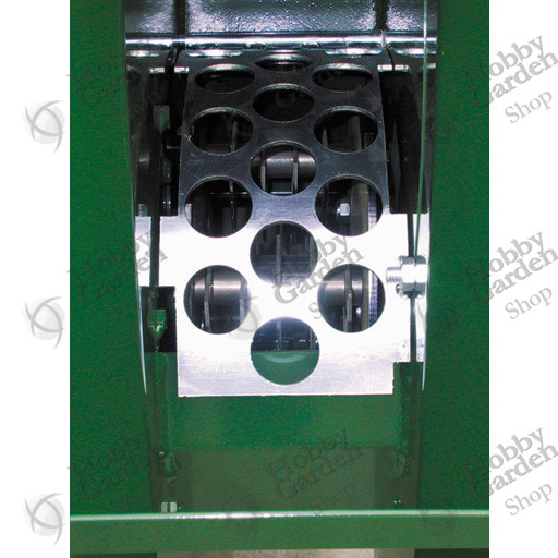 All’uscita del materiale è posto un vaglio mobile che garantisce la finezza del tritato. L’intera macchina è facilmente trasportabile grazie alle due ruote pneumatiche nonché alla maniglia posta sulla tramoggia.