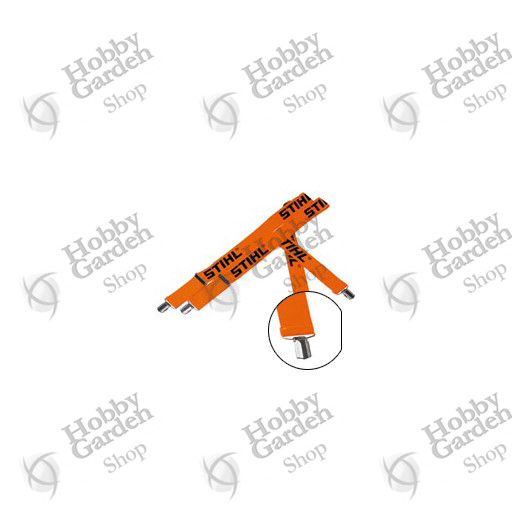Colore arancione. Per pantaloni in vita, con clips in metallo, con inserto contrastante in materiale sintetico.