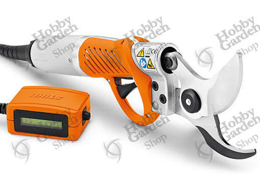 otente cesoia ad accumulatore per rami spessi fino a 45 mm. Ideale per la sfrondatura nella cura del verde comunale, nella frutticoltura, in vivai e vigneti. Robusta struttura in alluminio, forma ergonomica delle impugnature, apertura delle lame in quattro posizioni regolabili elettronicamente. Peso 980 g.