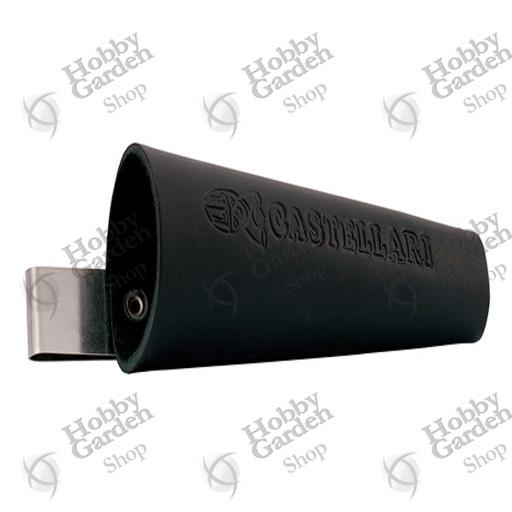Fodero a cono in pelle “fiore di bovino”. Adatto per tutte le forbici. Molla in acciaio inox.