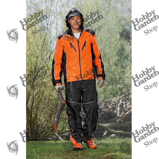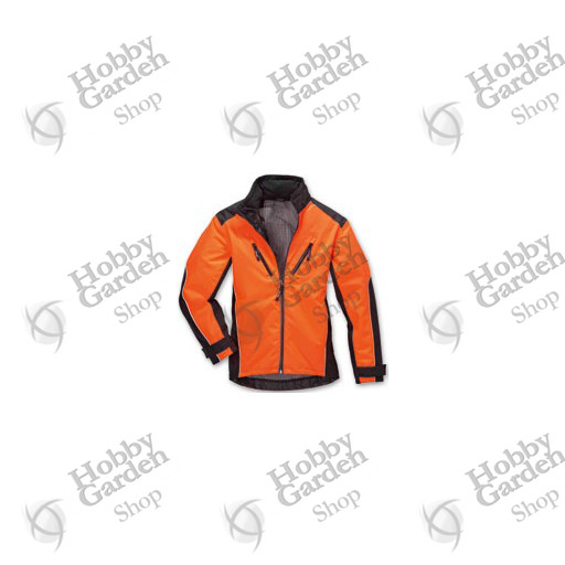 Con cuciture saldate e chiusure lampo idrorepellenti. Colore nero e arancione segnaletico, filetti riflettenti, EN 343 classe 3 (la migliore) per attività traspirante: RET < 18 m2 PA/W, impermeabilità: ≥ 13.000 Pa. Lunghi tagli per l’aerazione sotto le braccia, grande percentuale di arancione segnaletico, grande logo riflettente STIHL sulla schiena, colletto in Softshell regolabile in larghezza, cappuccio a scomparsa con visiera.
