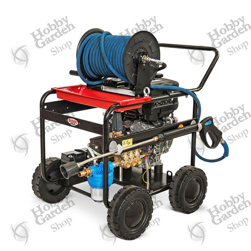 Pompa professionale Mazzoni in linea (a bielle) con testata in ottone e tre pistoni in ceramica. (a richiesta pompa Interpump)