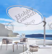 Palo in alluminio altezza 240, anello esterno in alluminio , anello interno in fibra di vetro, rotazione a 360°, altezza regolabile custodia inclusa, tessuto premium garanzia 3 anni in poliolefina 190gr/m2 colore bianco base di sostegno esclusa