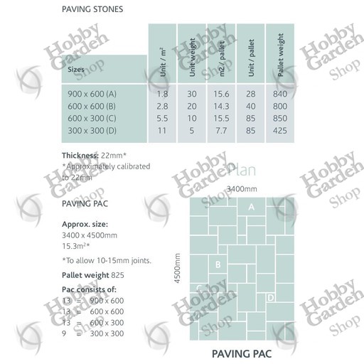 Cinque differenti dimensioni consentono di creare uno schema del tutto casuale rendendo possibile la realizzazione di vaste superfici.