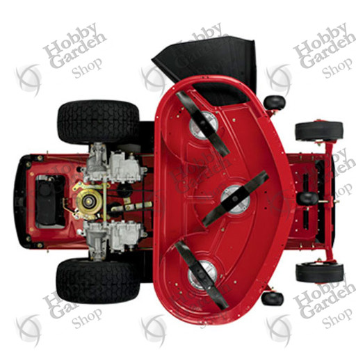 Dotato di apparato di taglio da 127 cm con dispositivo per il lavaggio automatico. Dotato di serie con il sistema Recycler di serie, il taglio Mulching brevettato da Toro, grazie al quale non è necessario raccogliere perché l’erba finemente sminuzzata viene rilasciata sul prato come concime. L’inserimento delle lame avviene tramite frizione elettromagnetica.