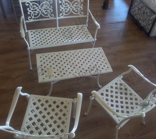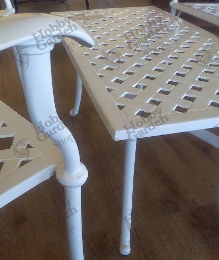 alluminio verniciato a polvere epossidica colore bianco mis. Panca 94×44×88h, mis sedia 47×44,5×88h, mis tavolino 91×46×45h