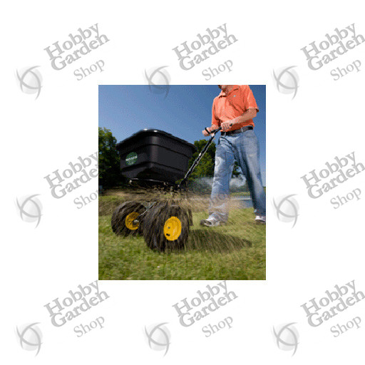 Lo spandiconcime modello 46 è molto maneggevole e si presta bene ai lavori medio / piccoli. Ha una capacità di 25 kg, telaio in acciaio verniciato e coppia conica con ingranaggi in nylon, per una maggiore durata. Le ruote sono pneumatiche.