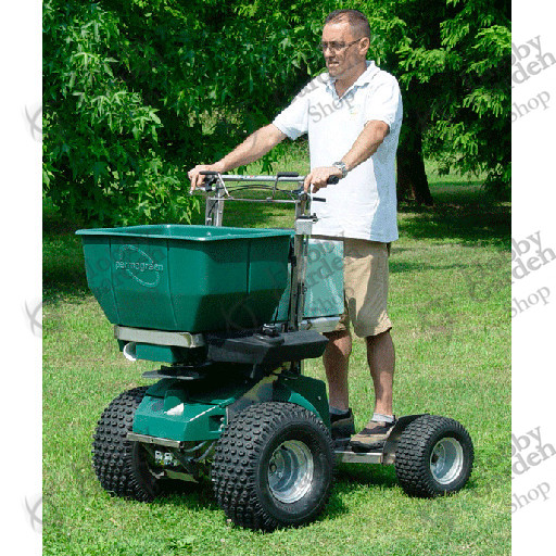 Il Permagreen è uno spandiconcime e un’ irroratrice semovente, raggruppate in un’unica macchina con operatore a bordo. E’ infatti possibile distribuire concime e diserbante in un’unica operazione contemporaneamente senza avere l’obbligo di spingere o camminare, ma semplicemente rimanendo in piedi nel carrellino trainato.