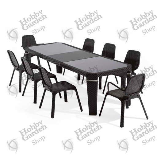 Tavolo completo di quattro sedie e due poltrone.