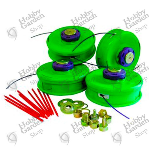 allineare gli occhielli, infilare il filo falciante attraverso la testina