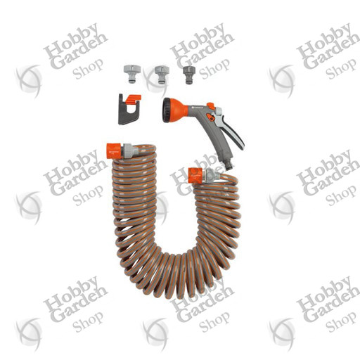 Perfetto per balconi e terrazzi. Tubo flessibile di grande qualità. Pronto all’uso, con raccordi e lancia da innaffiaggio GARDENA. Grazie alla forma a spirale, il tubo ritorna perfettamente a posto. Corredato di supporto murale.
